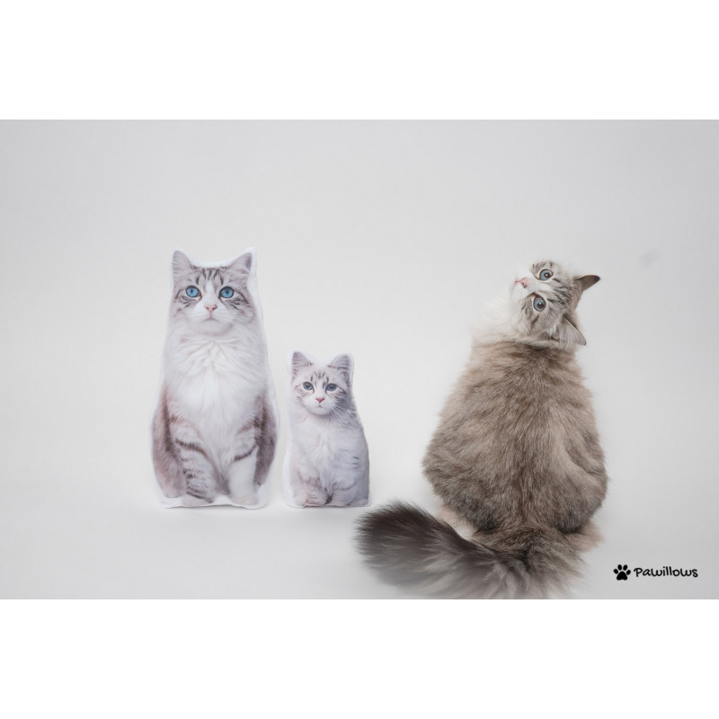 The large pillow is recommended for photos of cats and small dogs. Then, when placed next to the pet, it looks very realistic.